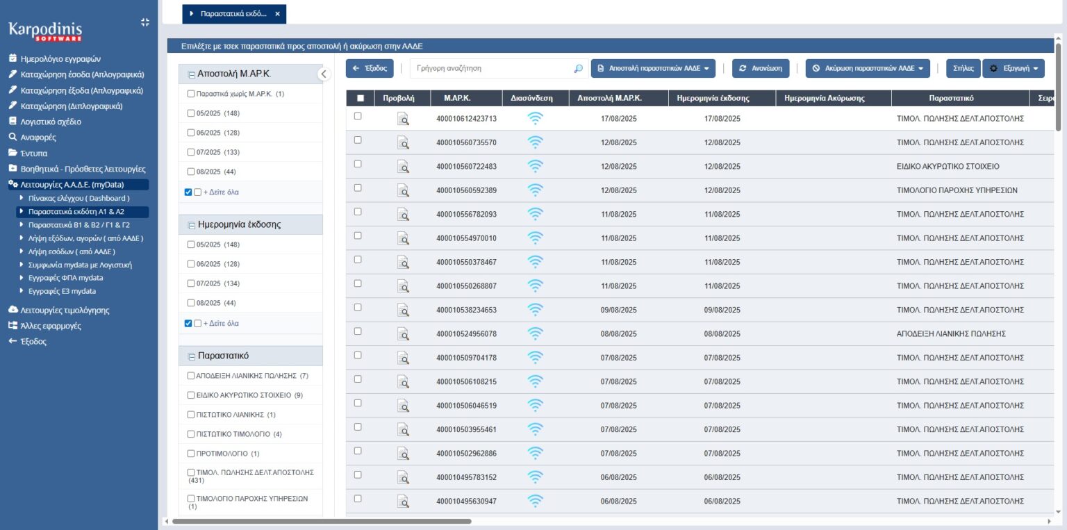 Πλήρως συμβατή εφαρμογή με την πλατφόρμα myDATA της ΑΑΔΕ για την έγκαιρη και σωστή υποβολή των παραστατικών σας