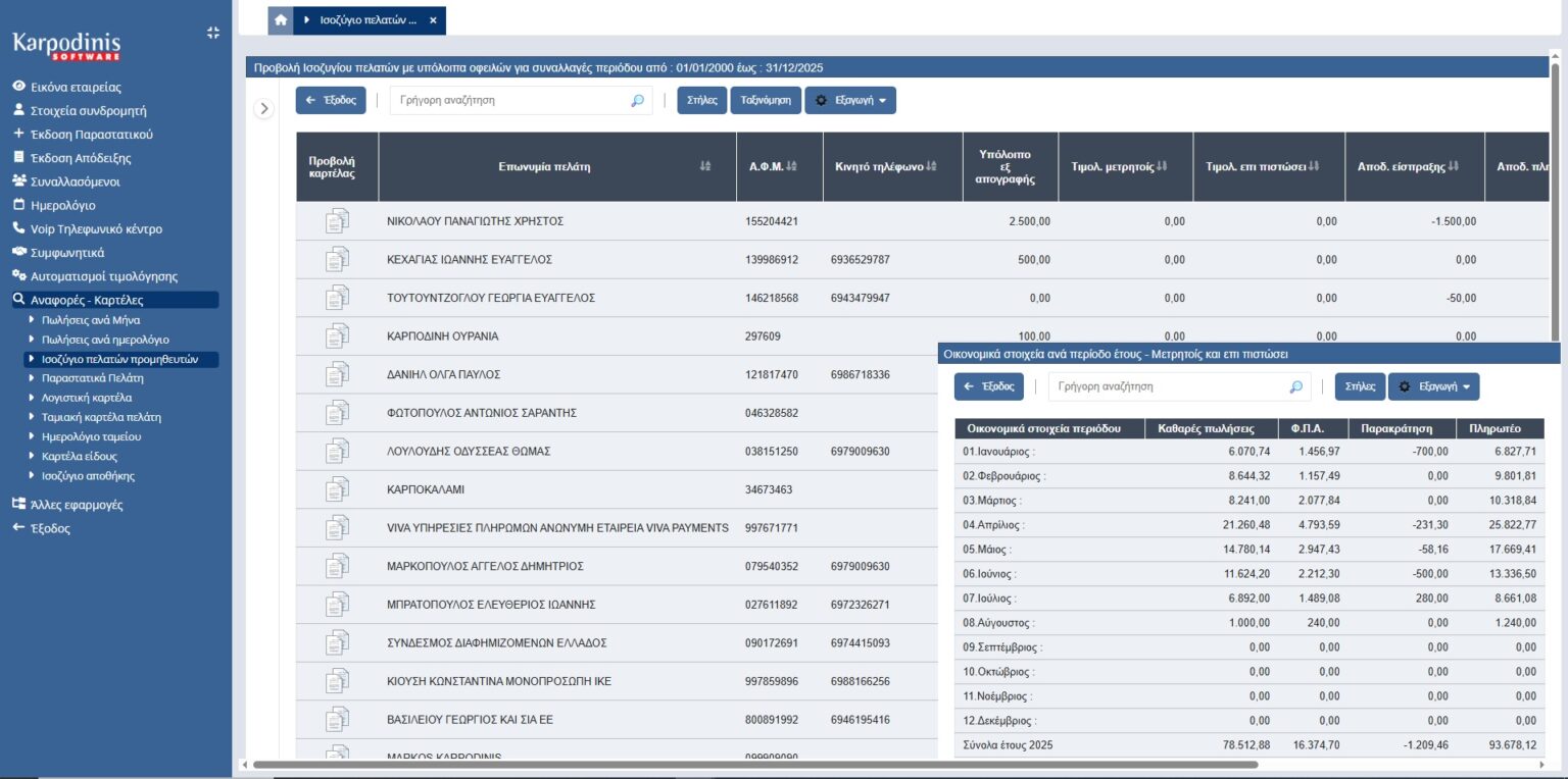 - Δυνατότητα προβολής του συνοπτικού βιβλίου και στην θυρίδα του πελάτη σας εφόσον του δώσετε πρόσβαση.
