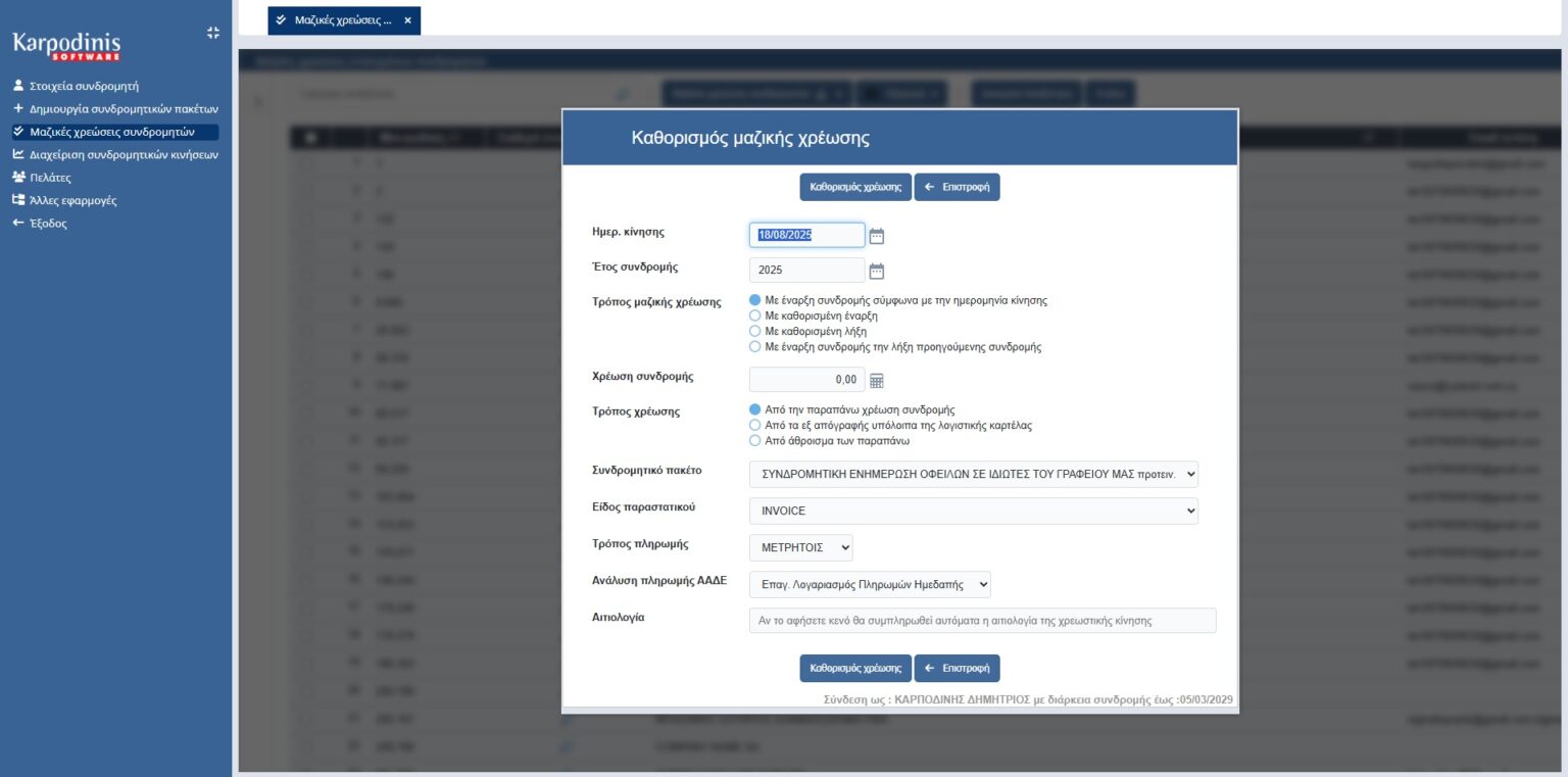 Δυνατότητα μαζικής έκδοσης παραστατικών µόνο για τους ταμιακά ενήμερους συνδρομητές