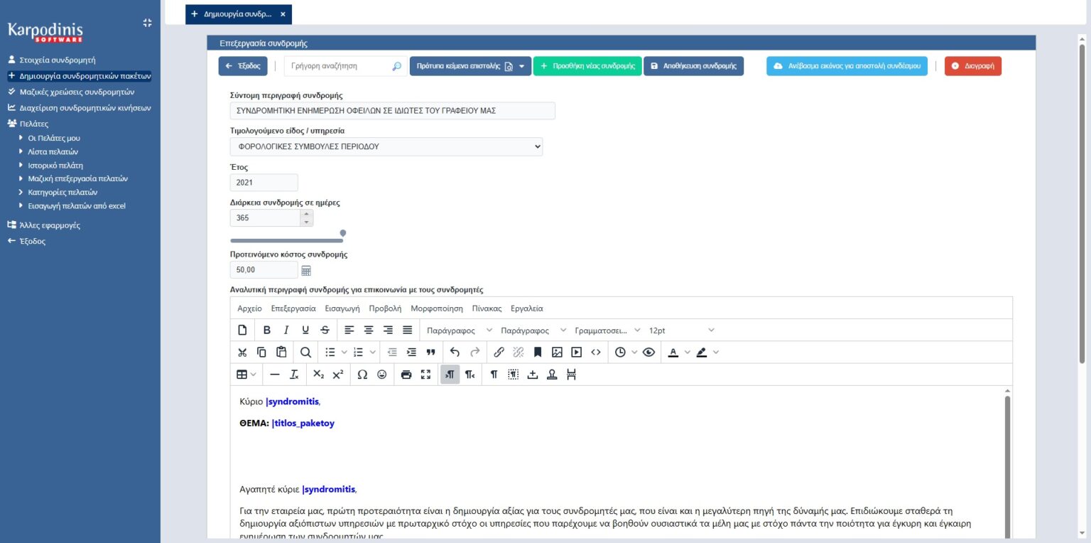 - Παρακολούθηση και ενηµέρωση της κατάθεσης συνδροµής στον εκάστοτε πελάτη