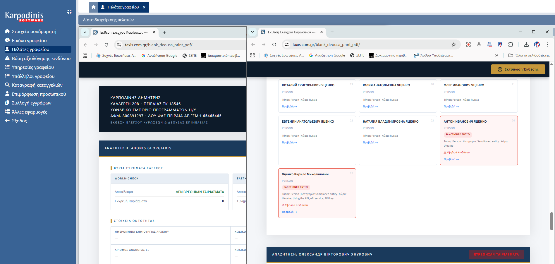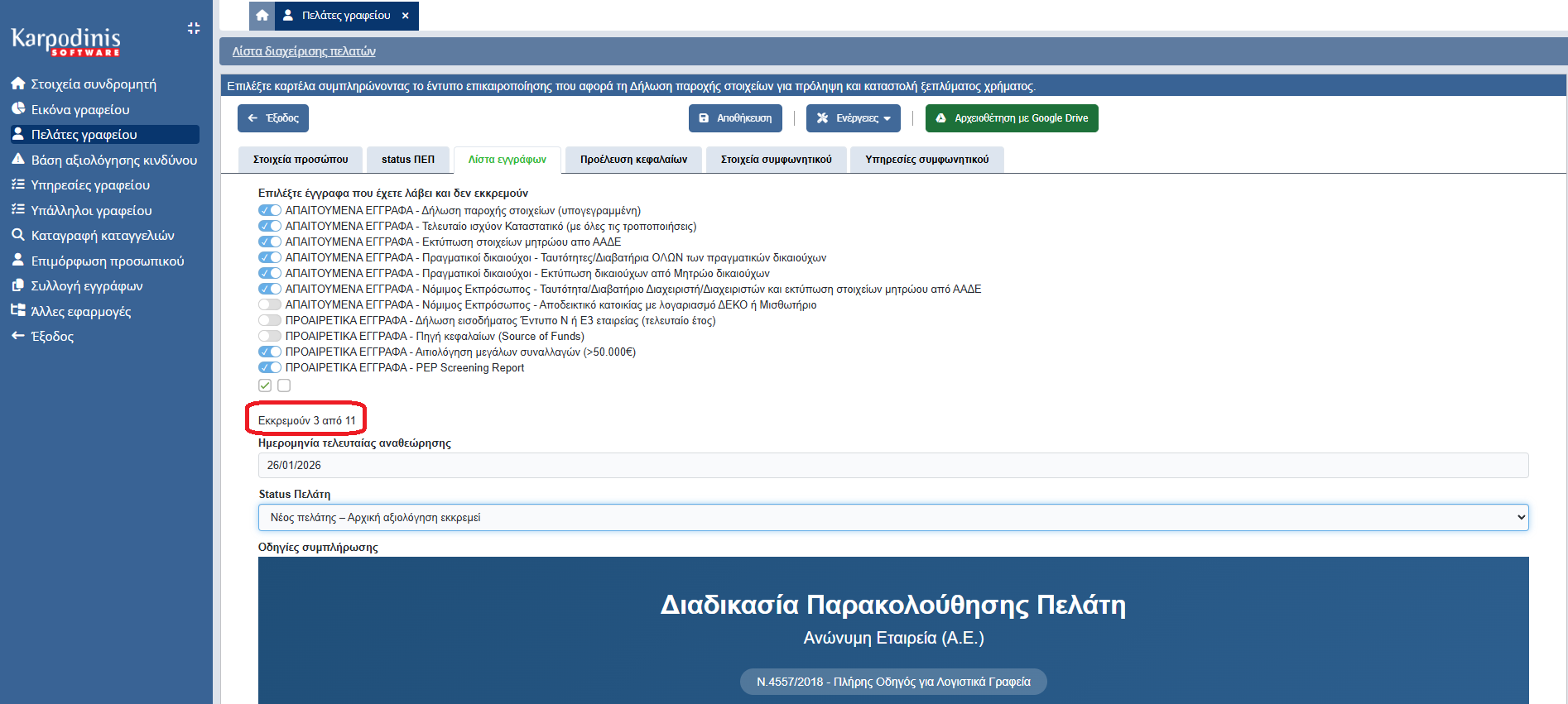 Αποθηκεύστε όλα τα δικαιολογητικά στο Google Drive, Onedrive, dropbox ανά πελάτη. Άμεση άντληση από ευρωπαϊκές βάσεις δεδομένων για Πολιτικά Εκτεθειμένα Πρόσωπα και οικονομικές κυρώσεις