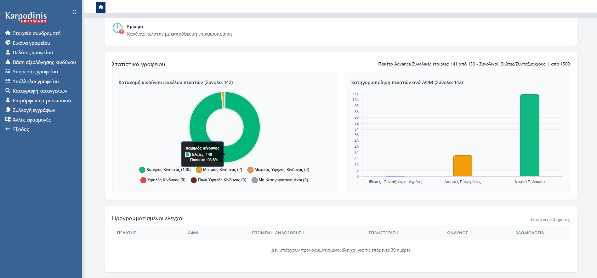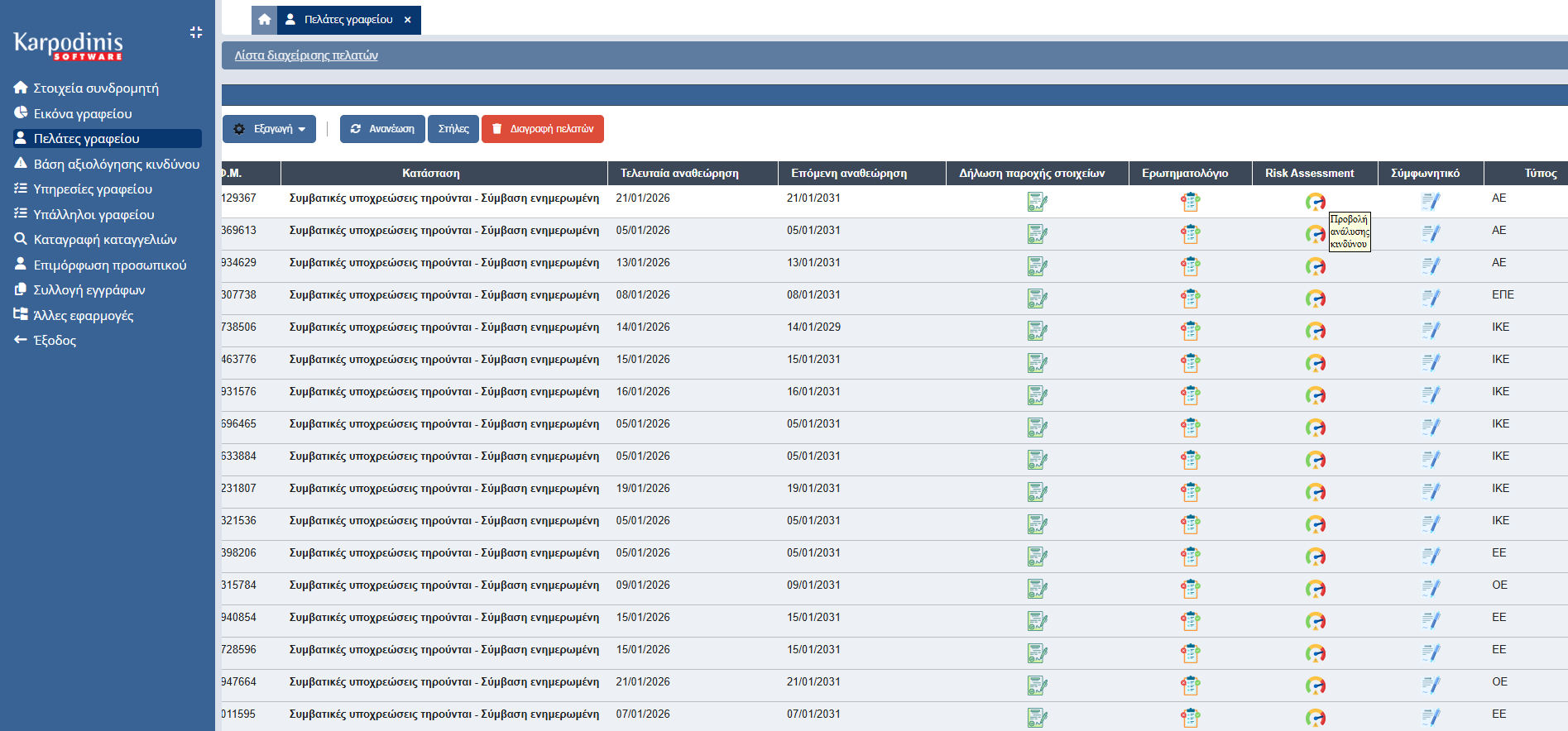 - Έξυπνα Φίλτρα: Ταξινόμηση ανά κατηγορία κινδύνου, status, ημερομηνία επικαιροποίησης
